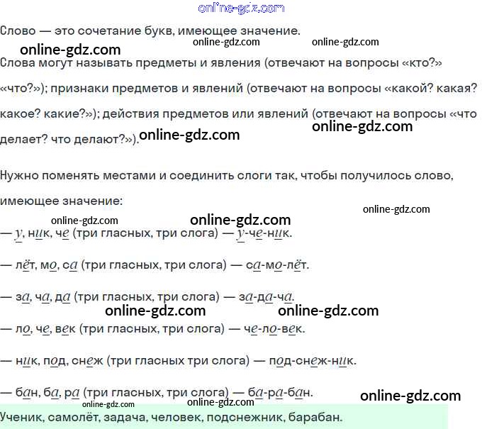 Готовые домашние задания по Русскому языку за 1 класс Тренажёр Тихомирова Тренажёр 2022 - Слово и слог. Перенос слов. Ударение 1