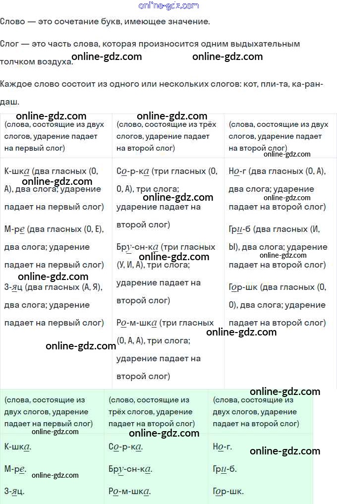 Готовые домашние задания по Русскому языку за 1 класс Тренажёр Тихомирова Тренажёр 2022 - Слово и слог. Перенос слов. Ударение 10