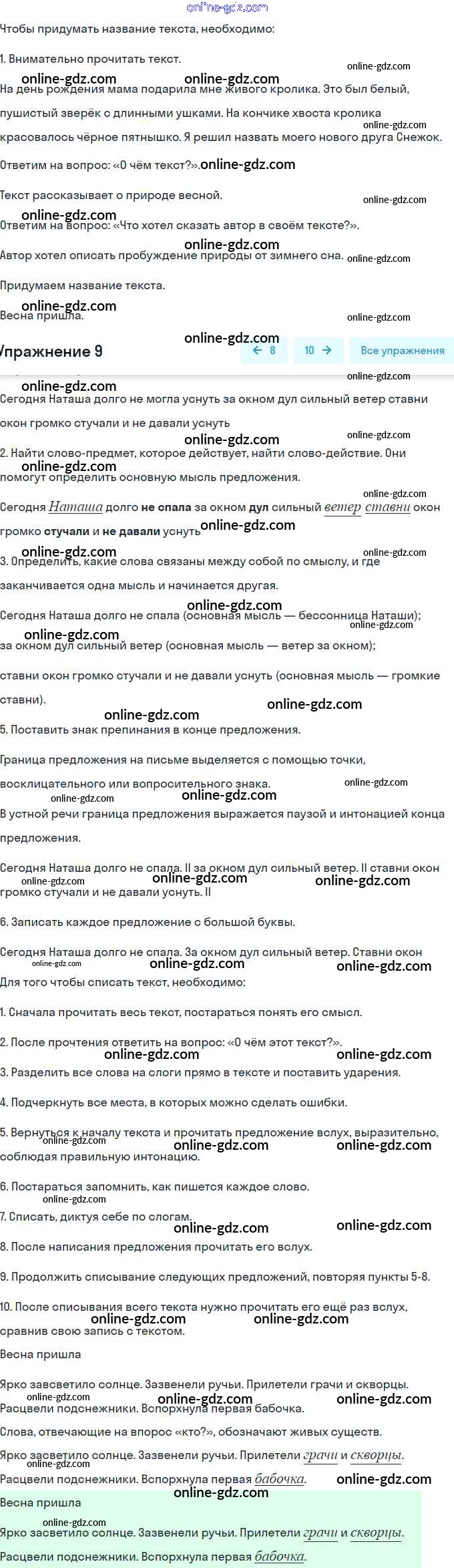 Готовые домашние задания по Русскому языку за 1 класс Тренажёр Тихомирова Тренажёр 2022 - Повторение 9