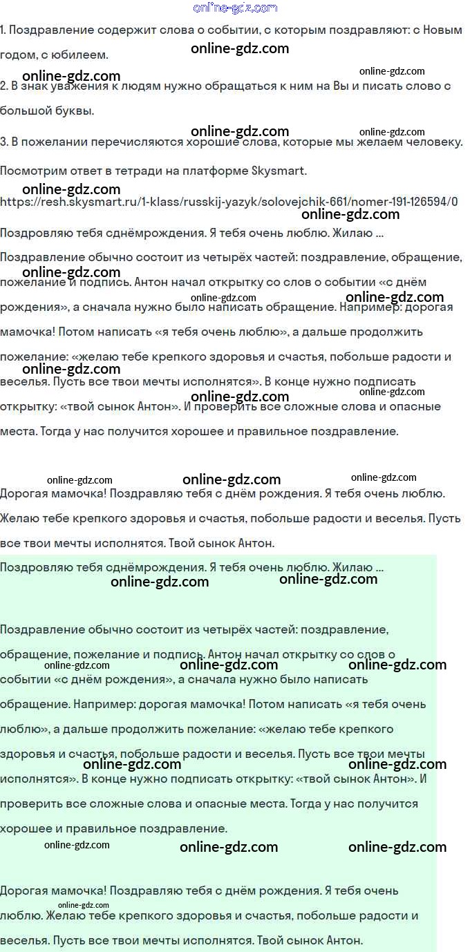Готовые домашние задания по Русскому языку за 1 класс Учебник Кузьменко, Соловейчик Гармония 2022 - Упражнения 191