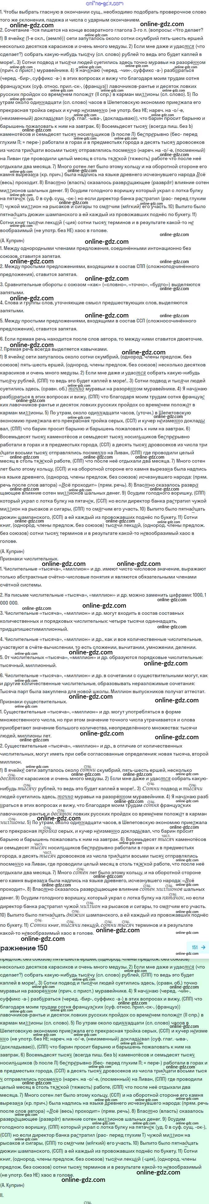 Готовые домашние задания по Русскому языку за 11 класс Учебник Гусарова Базовый и углубленный уровень 2022 - Упражнения 150