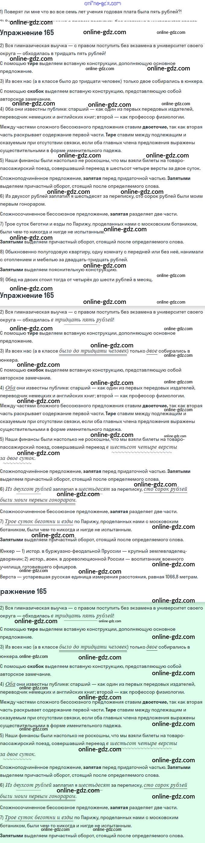 Готовые домашние задания по Русскому языку за 11 класс Учебник Гусарова Базовый и углубленный уровень 2022 - Упражнения 165
