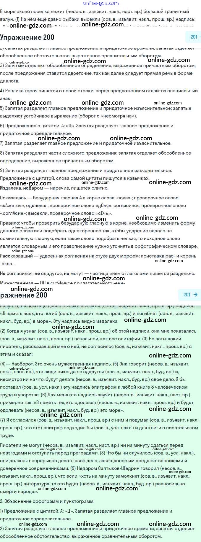 Готовые домашние задания по Русскому языку за 11 класс Учебник Гусарова Базовый и углубленный уровень 2022 - Упражнения 200