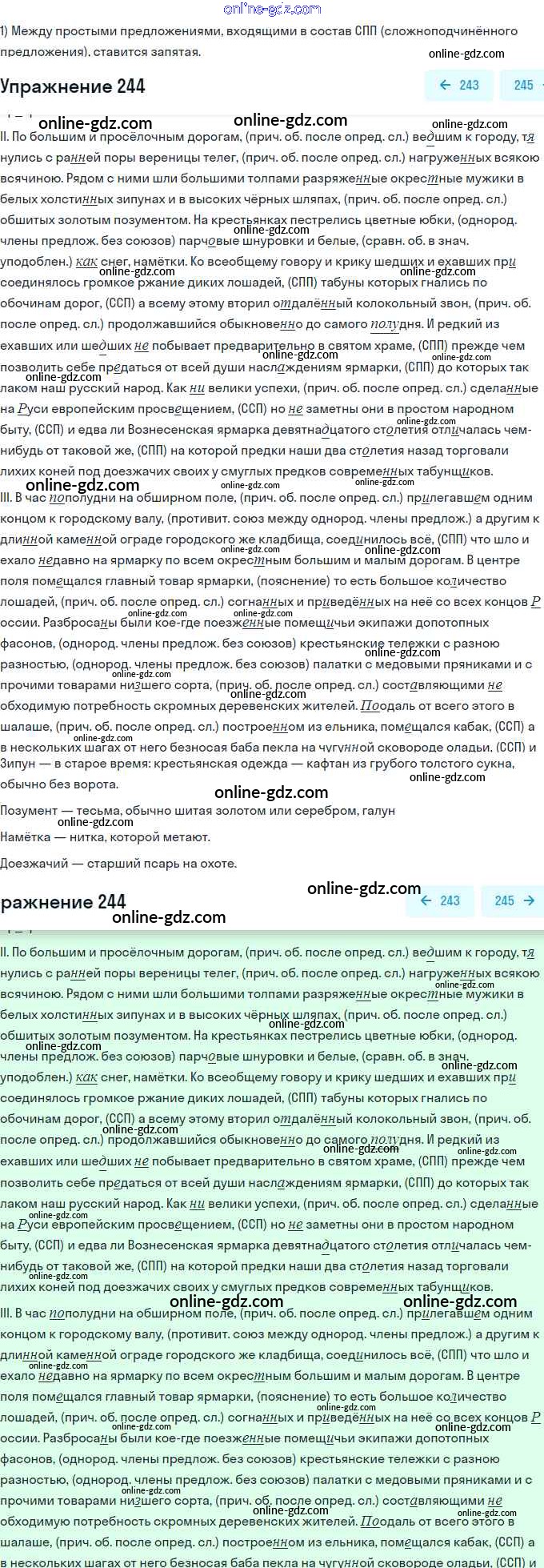 Готовые домашние задания по Русскому языку за 11 класс Учебник Гусарова Базовый и углубленный уровень 2022 - Упражнения 244