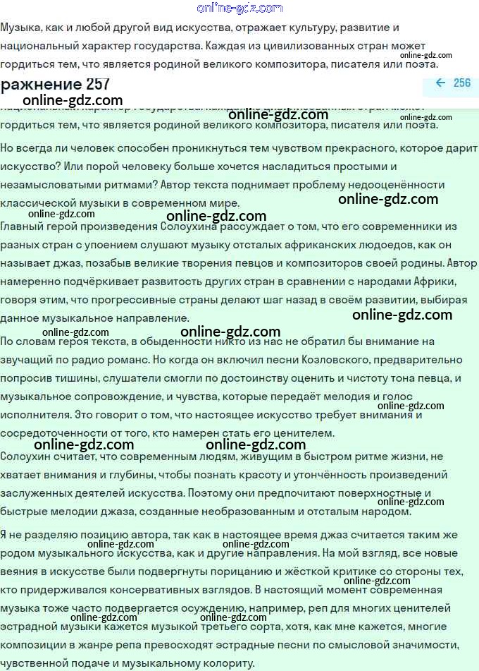 Готовые домашние задания по Русскому языку за 11 класс Учебник Гусарова Базовый и углубленный уровень 2022 - Упражнения 257