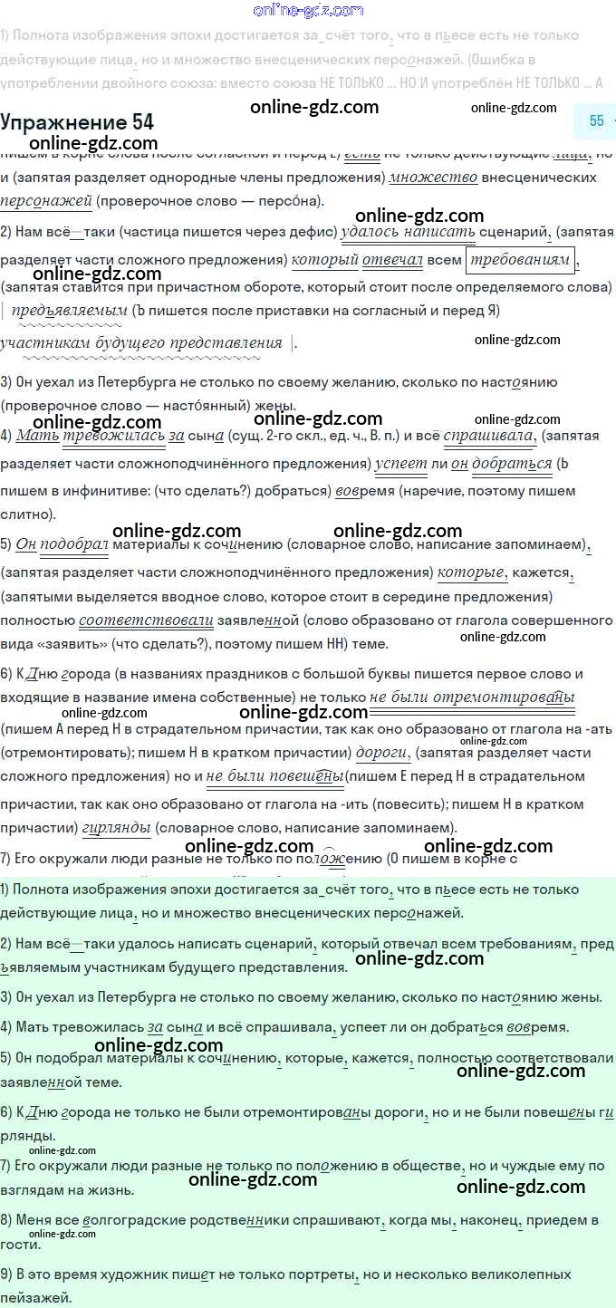 Готовые домашние задания по Русскому языку за 11 класс Учебник Гусарова Базовый и углубленный уровень 2022 - Упражнения 54