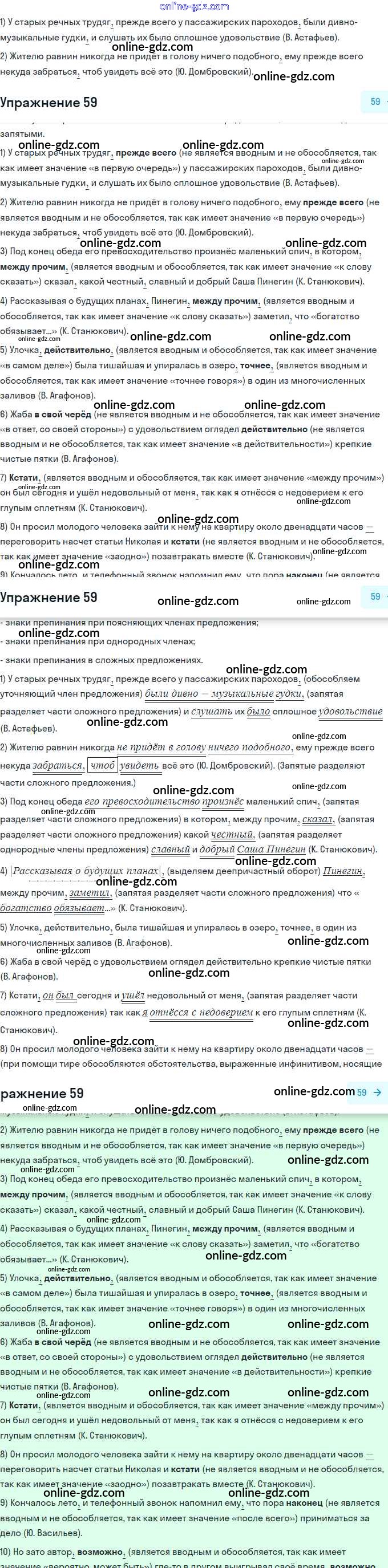 Готовые домашние задания по Русскому языку за 11 класс Учебник Гусарова Базовый и углубленный уровень 2022 - Упражнения 59