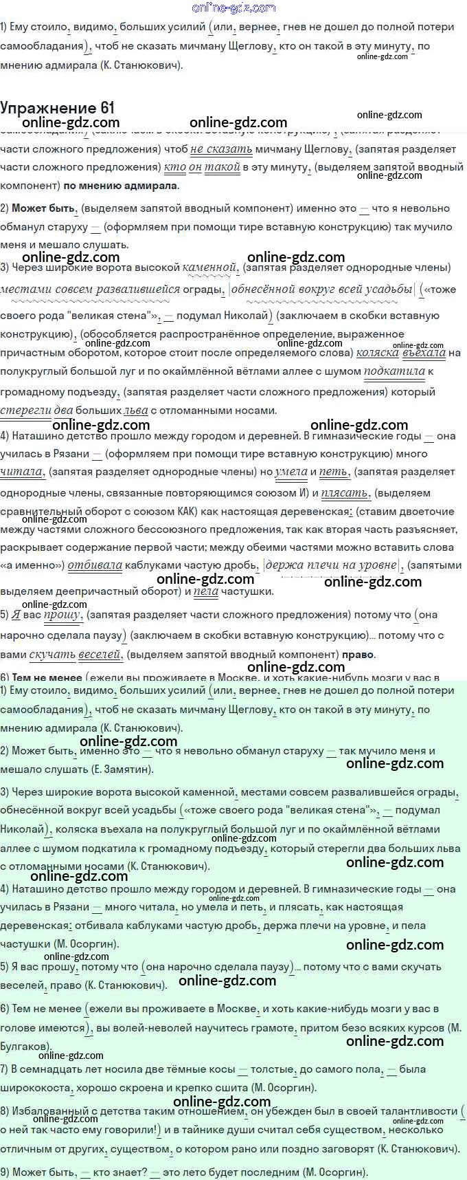 Готовые домашние задания по Русскому языку за 11 класс Учебник Гусарова Базовый и углубленный уровень 2022 - Упражнения 61