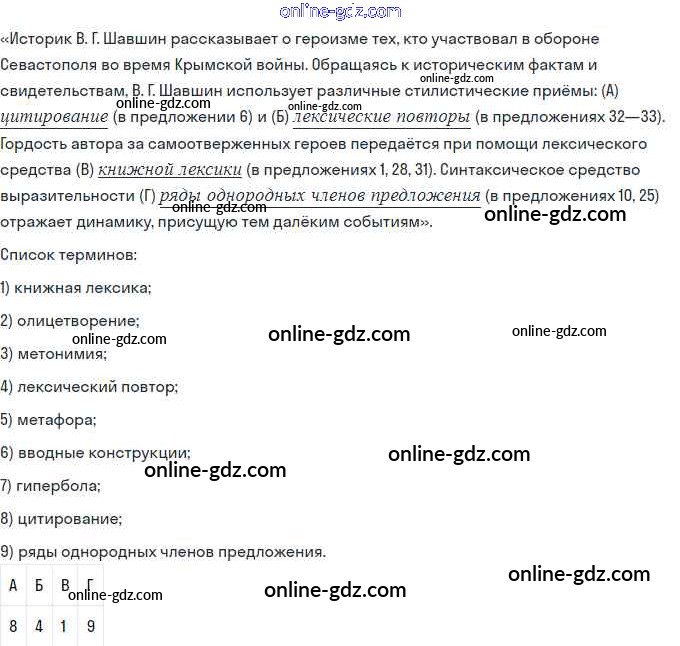 Готовые домашние задания по Русскому языку за 11 класс Тетрадь-тренажёр Маслов, Бондарцова Трудные задания ЕГЭ 2020 - Контрольная диагностика 26