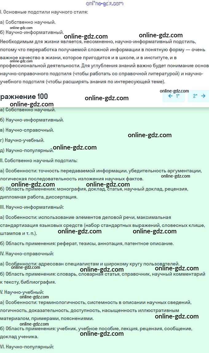 Готовые домашние задания по Русскому языку за 11 класс Учебник Львова, Львов Базовый и углубленный уровень 2016 - Упражнения 100
