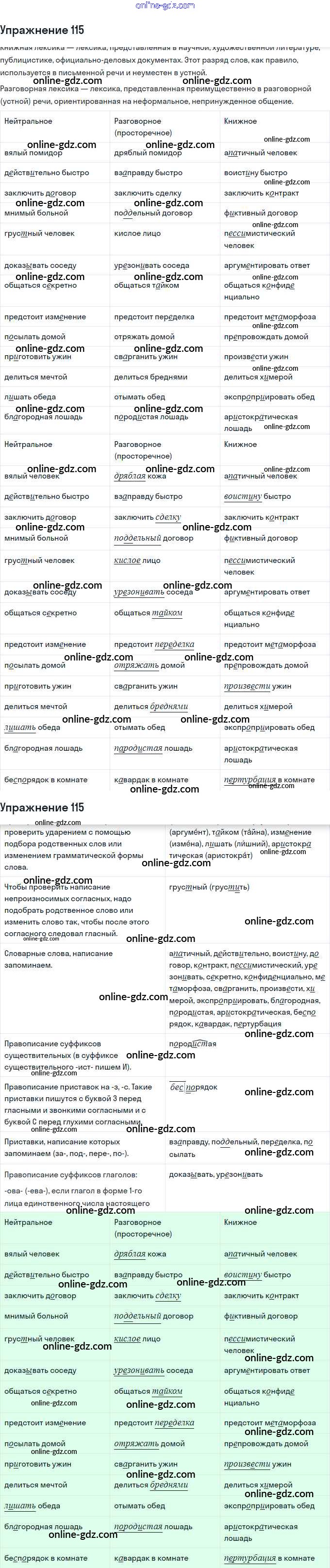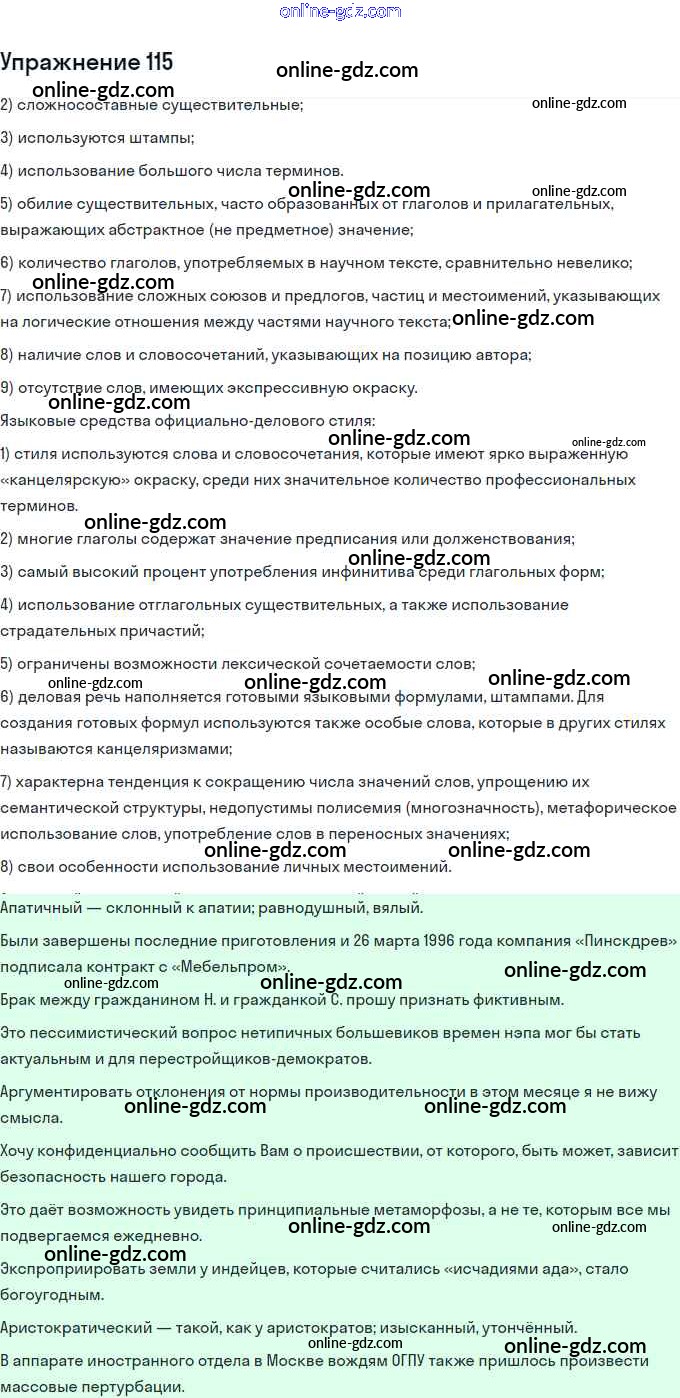 Готовые домашние задания по Русскому языку за 11 класс Учебник Львова, Львов Базовый и углубленный уровень 2016 - Упражнения 115