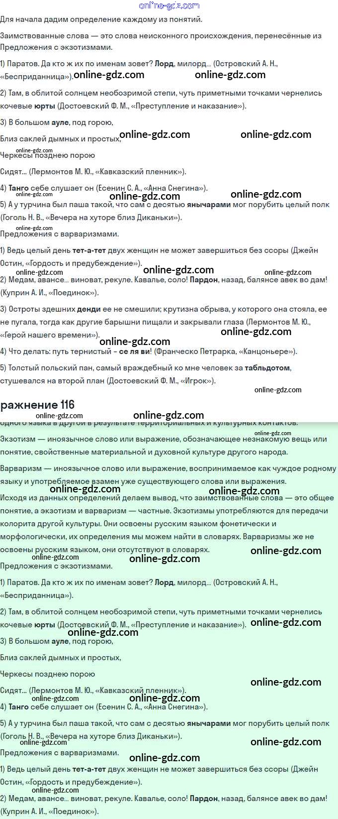 Готовые домашние задания по Русскому языку за 11 класс Учебник Львова, Львов Базовый и углубленный уровень 2016 - Упражнения 116