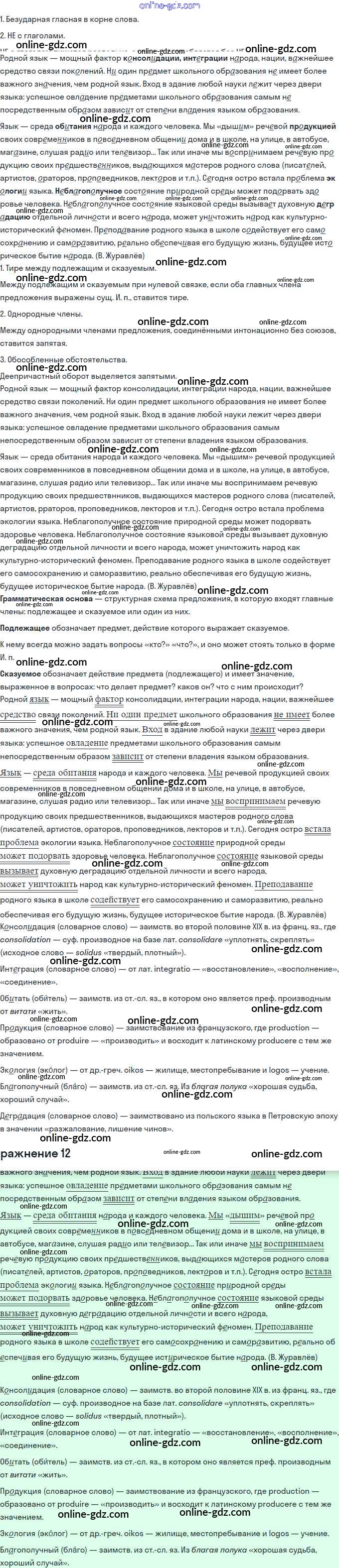 Готовые домашние задания по Русскому языку за 11 класс Учебник Львова, Львов Базовый и углубленный уровень 2016 - Упражнения 12