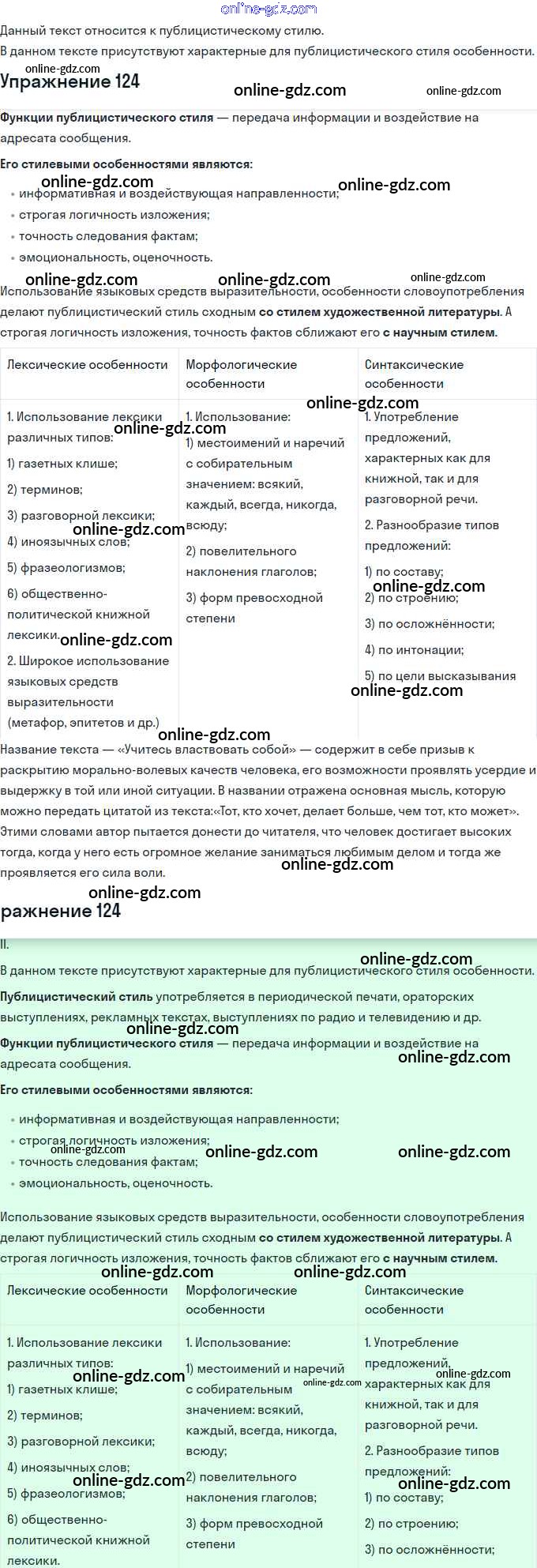 Готовые домашние задания по Русскому языку за 11 класс Учебник Львова, Львов Базовый и углубленный уровень 2016 - Упражнения 124