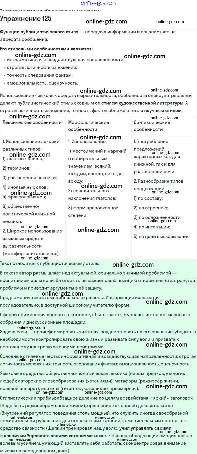 Готовые домашние задания по Русскому языку за 11 класс Учебник Львова, Львов Базовый и углубленный уровень 2016 - Упражнения 125