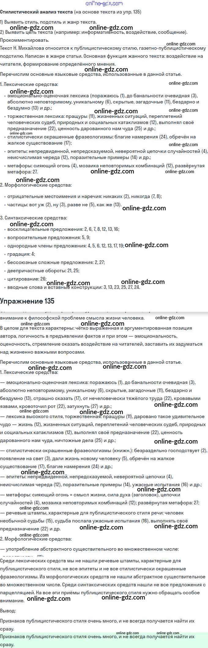 Готовые домашние задания по Русскому языку за 11 класс Учебник Львова, Львов Базовый и углубленный уровень 2016 - Упражнения 135