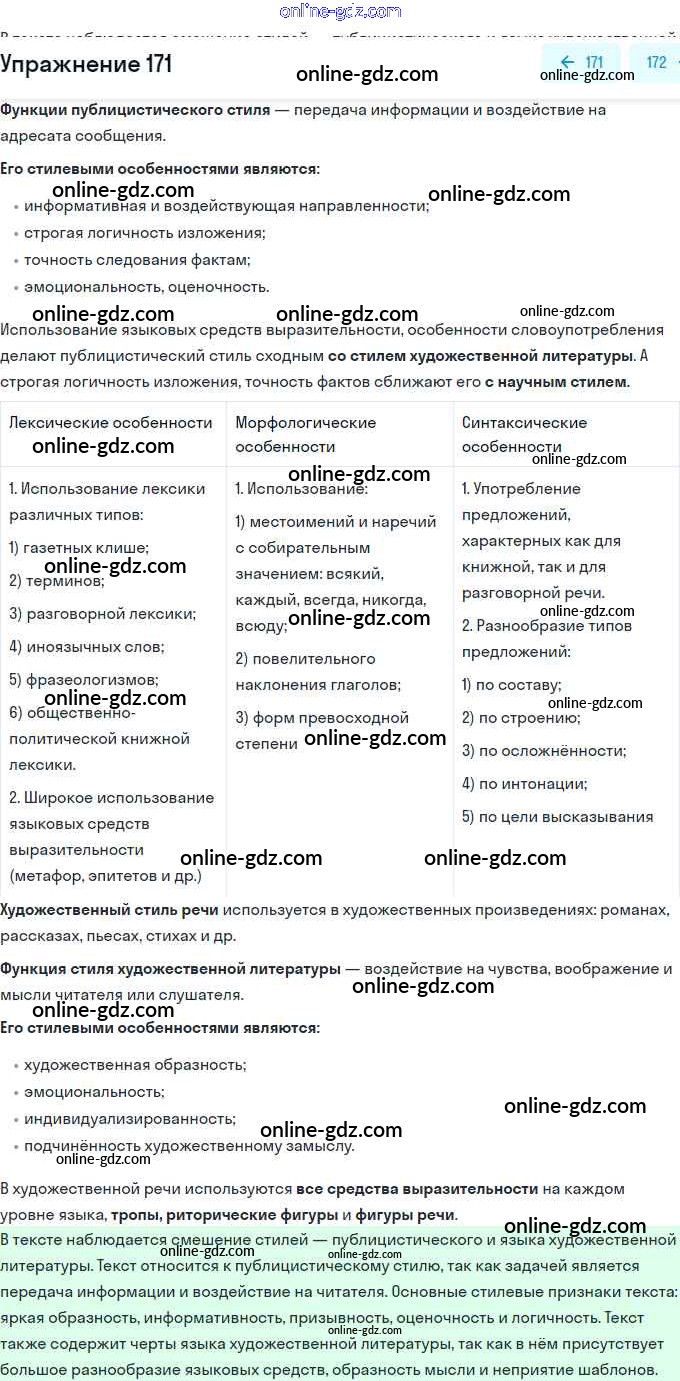 Готовые домашние задания по Русскому языку за 11 класс Учебник Львова, Львов Базовый и углубленный уровень 2016 - Упражнения 171