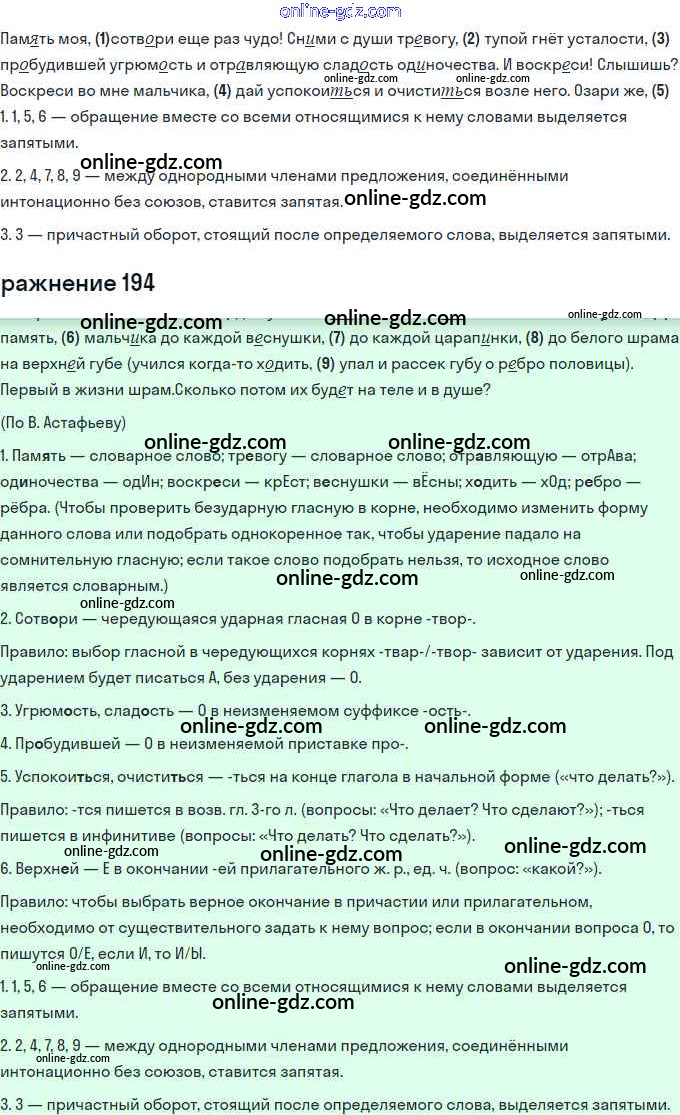 Готовые домашние задания по Русскому языку за 11 класс Учебник Львова, Львов Базовый и углубленный уровень 2016 - Упражнения 194