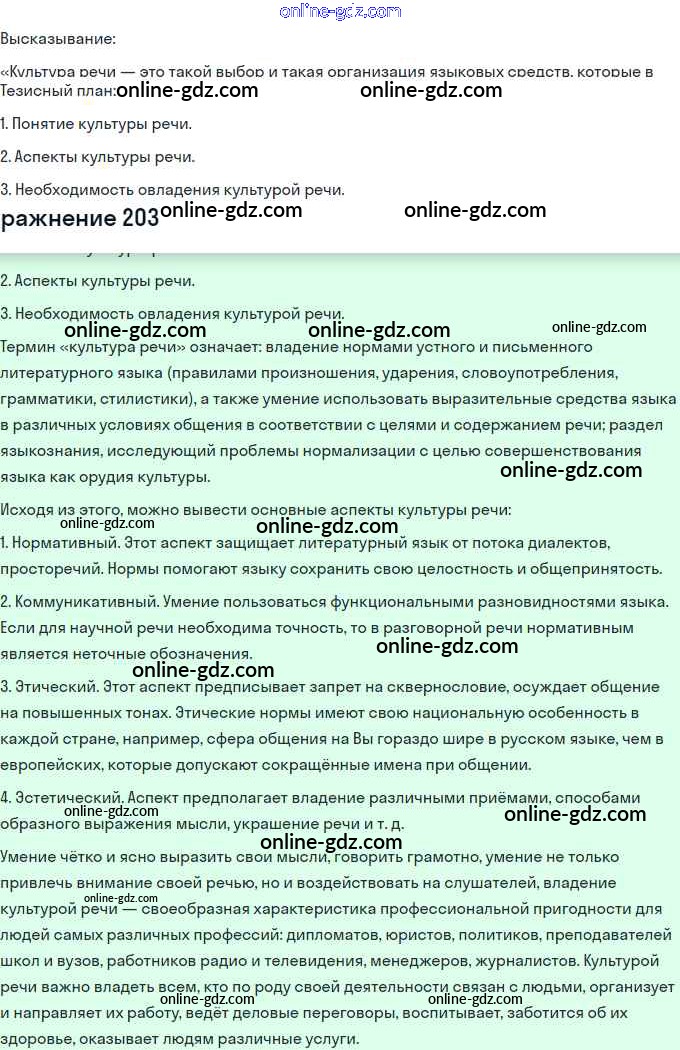 Готовые домашние задания по Русскому языку за 11 класс Учебник Львова, Львов Базовый и углубленный уровень 2016 - Упражнения 203