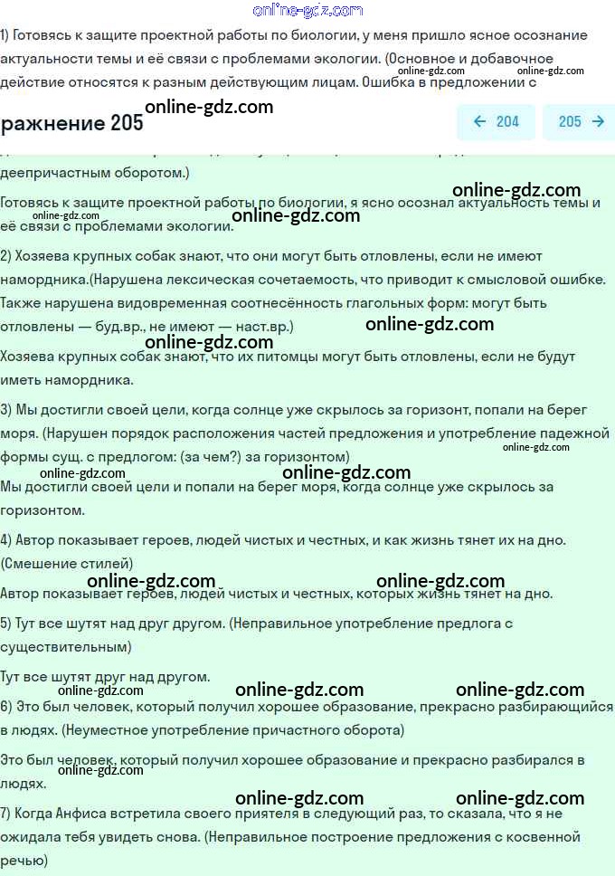 Готовые домашние задания по Русскому языку за 11 класс Учебник Львова, Львов Базовый и углубленный уровень 2016 - Упражнения 205