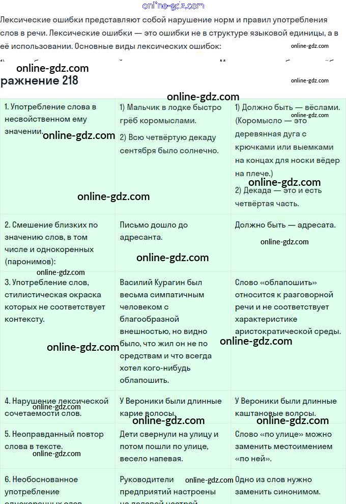 Готовые домашние задания по Русскому языку за 11 класс Учебник Львова, Львов Базовый и углубленный уровень 2016 - Упражнения 218