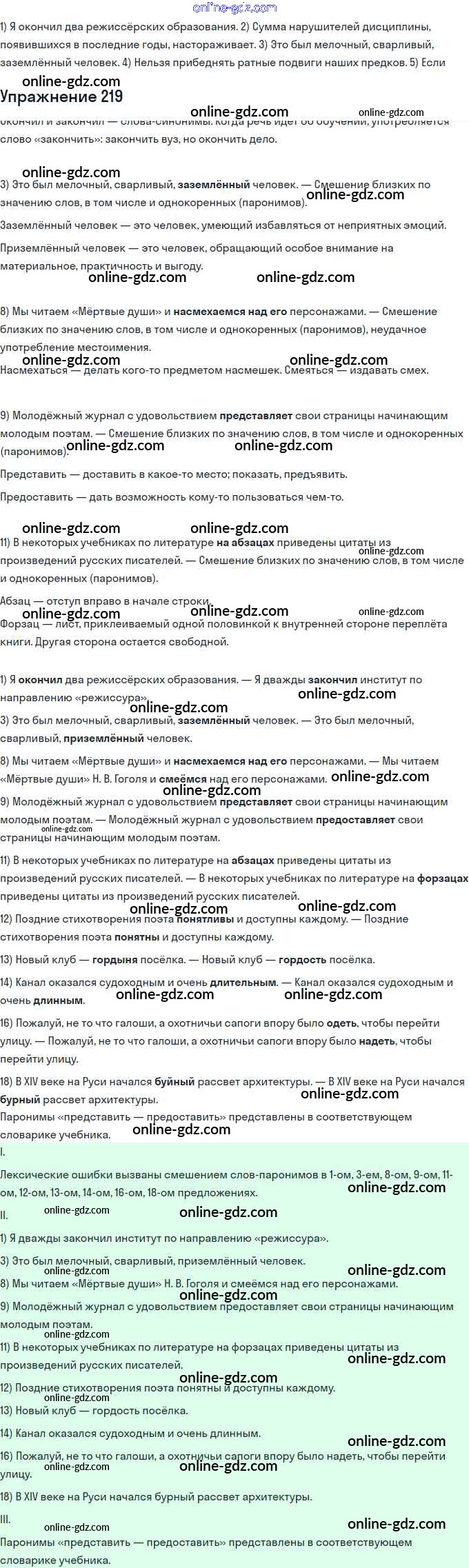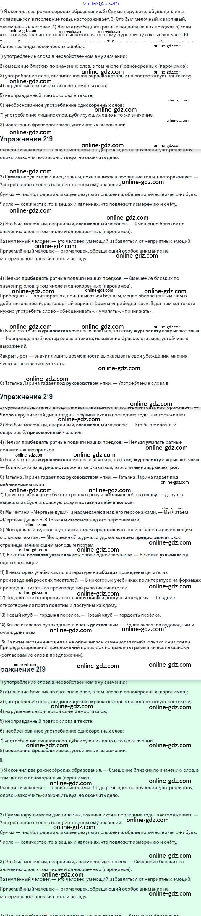 Готовые домашние задания по Русскому языку за 11 класс Учебник Львова, Львов Базовый и углубленный уровень 2016 - Упражнения 219