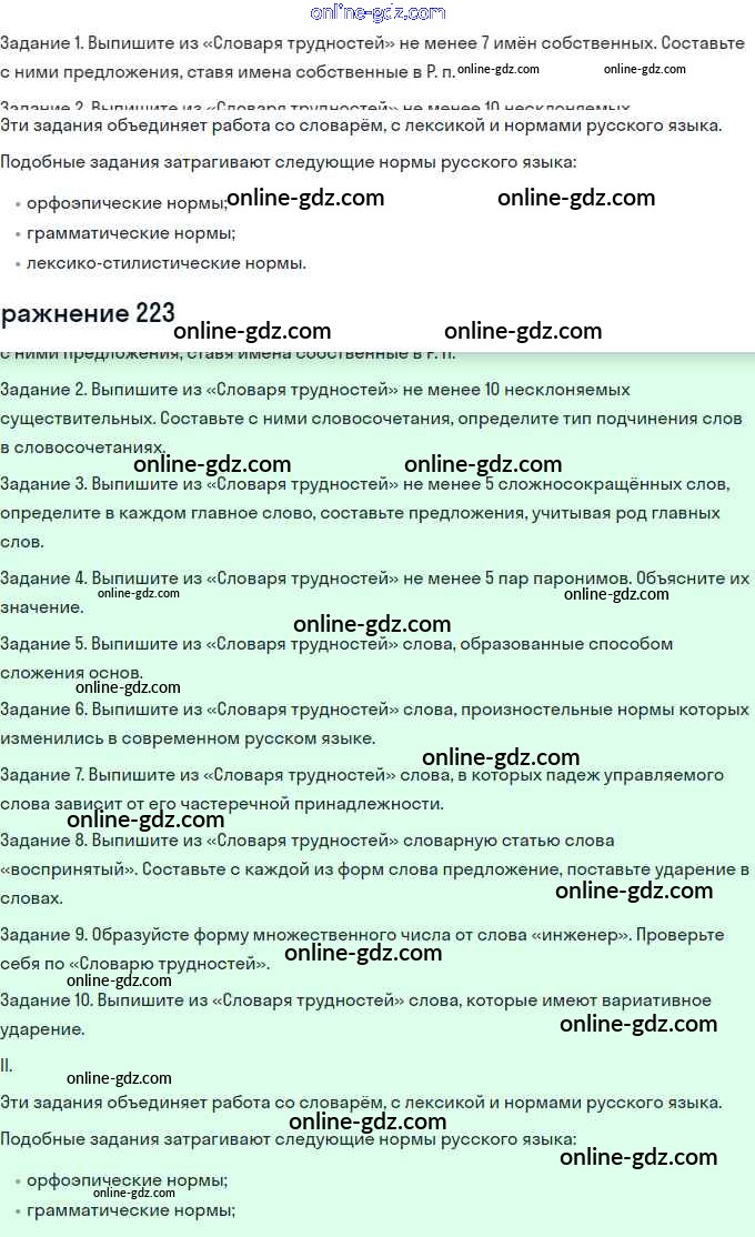 Готовые домашние задания по Русскому языку за 11 класс Учебник Львова, Львов Базовый и углубленный уровень 2016 - Упражнения 223
