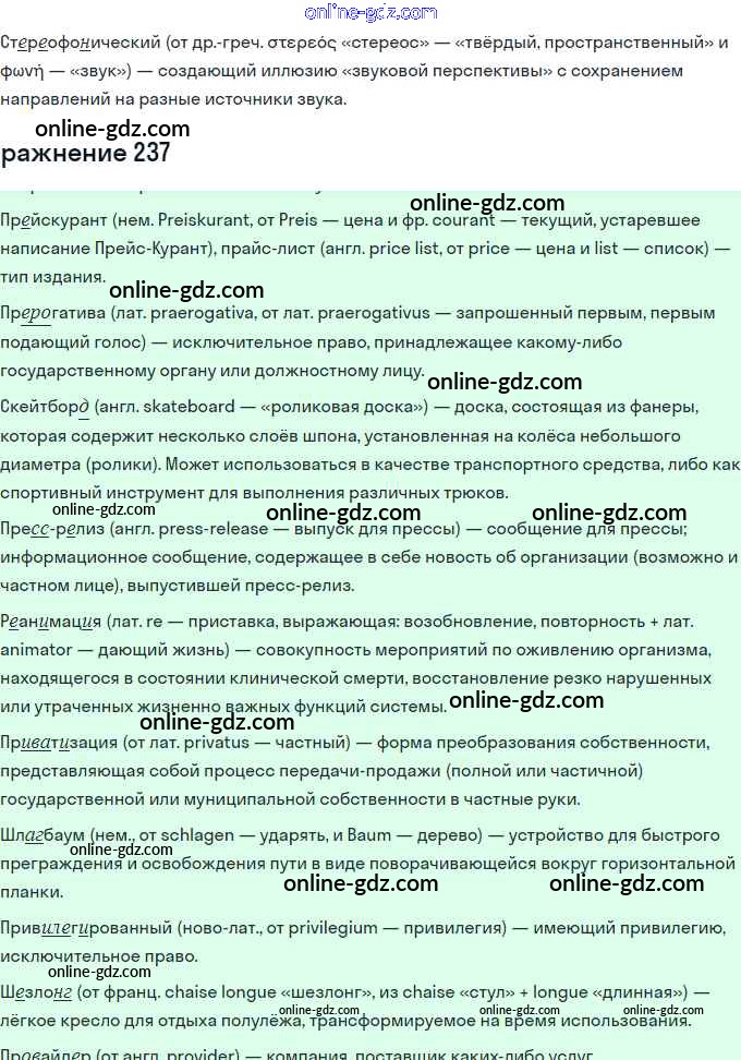 Готовые домашние задания по Русскому языку за 11 класс Учебник Львова, Львов Базовый и углубленный уровень 2016 - Упражнения 237