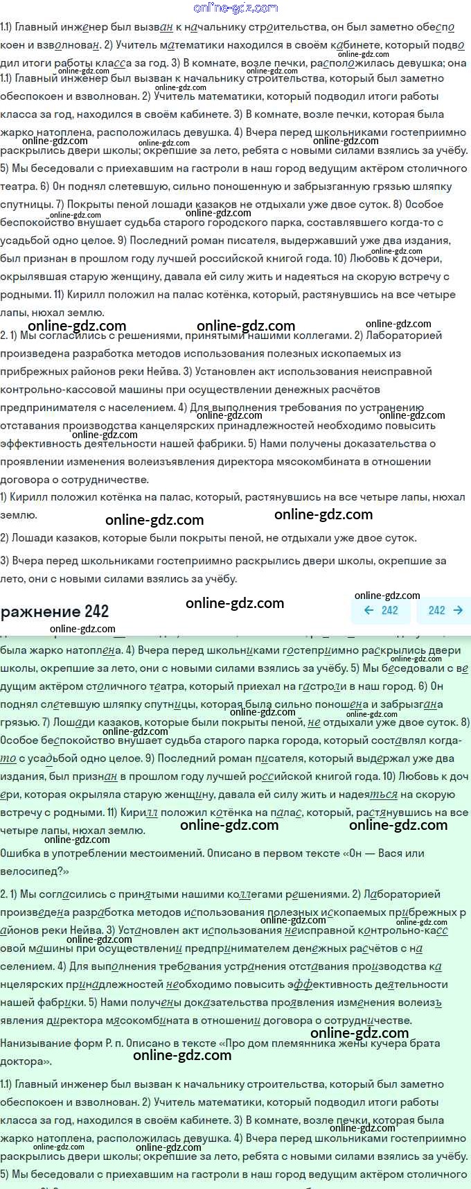 Готовые домашние задания по Русскому языку за 11 класс Учебник Львова, Львов Базовый и углубленный уровень 2016 - Упражнения 242