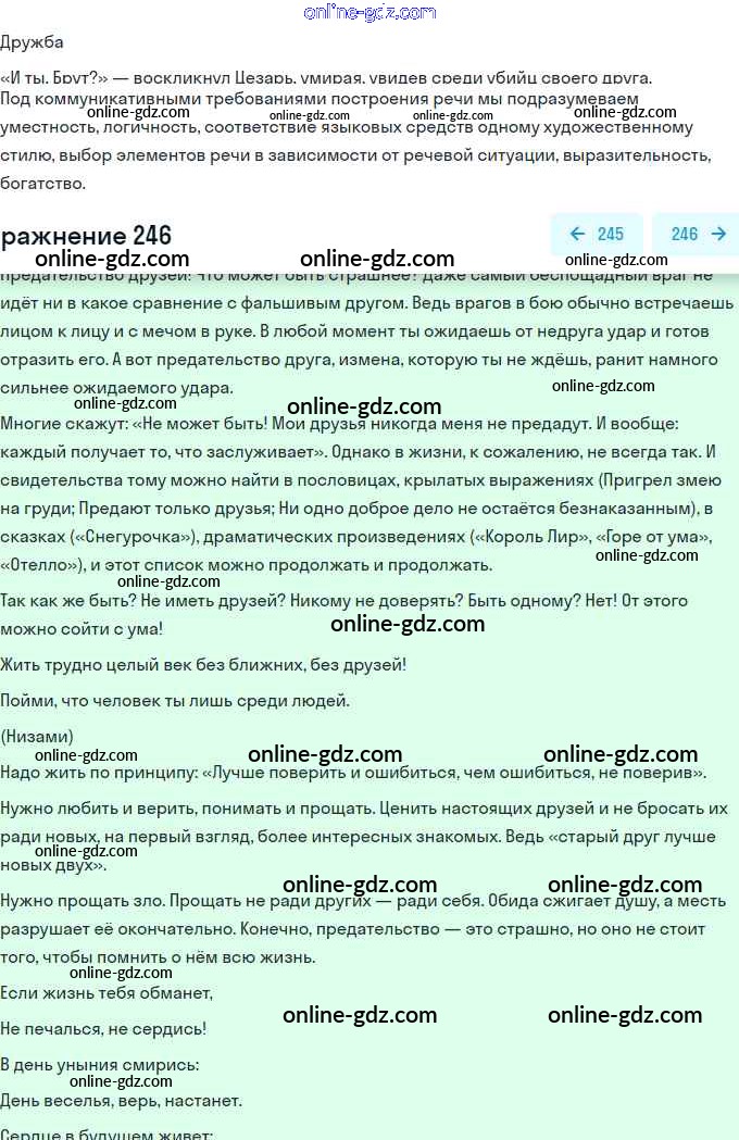 Готовые домашние задания по Русскому языку за 11 класс Учебник Львова, Львов Базовый и углубленный уровень 2016 - Упражнения 246