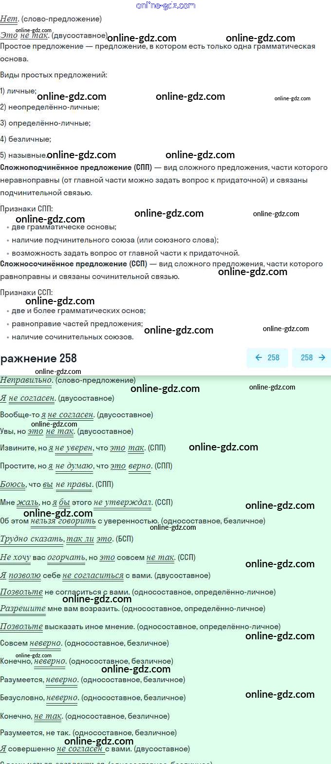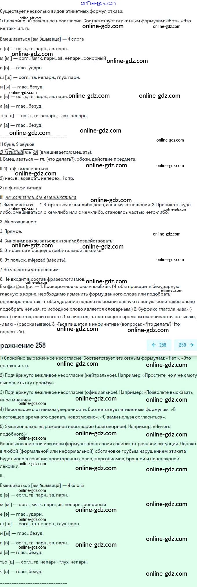 Готовые домашние задания по Русскому языку за 11 класс Учебник Львова, Львов Базовый и углубленный уровень 2016 - Упражнения 258