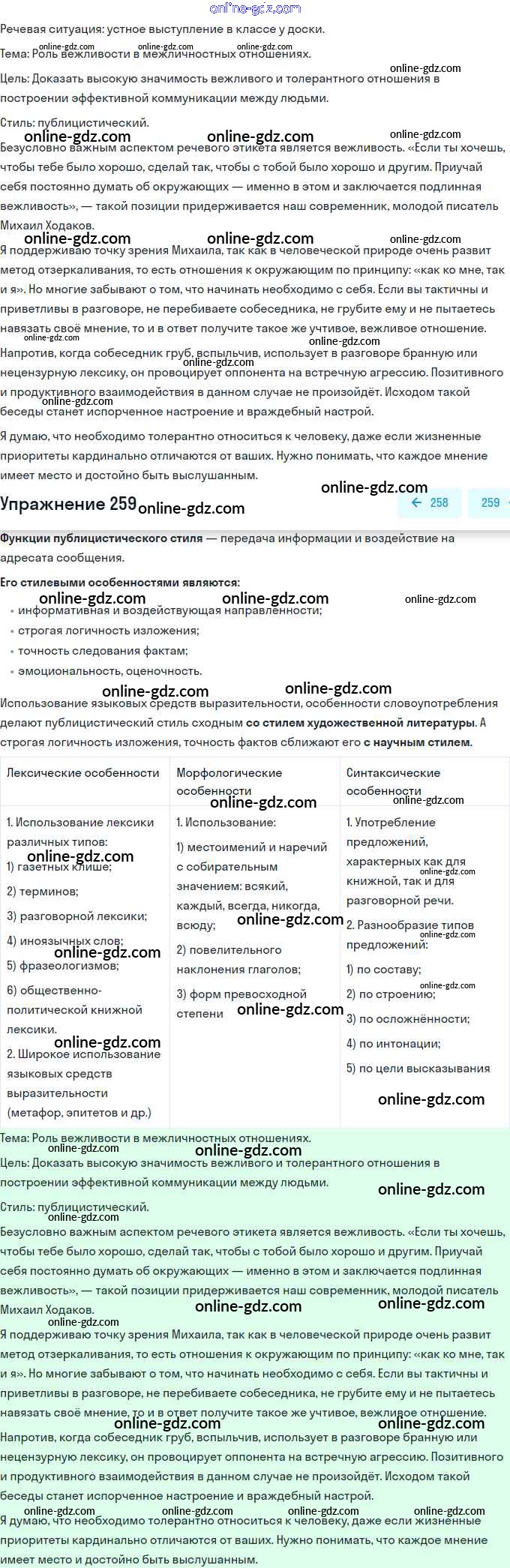 Готовые домашние задания по Русскому языку за 11 класс Учебник Львова, Львов Базовый и углубленный уровень 2016 - Упражнения 259