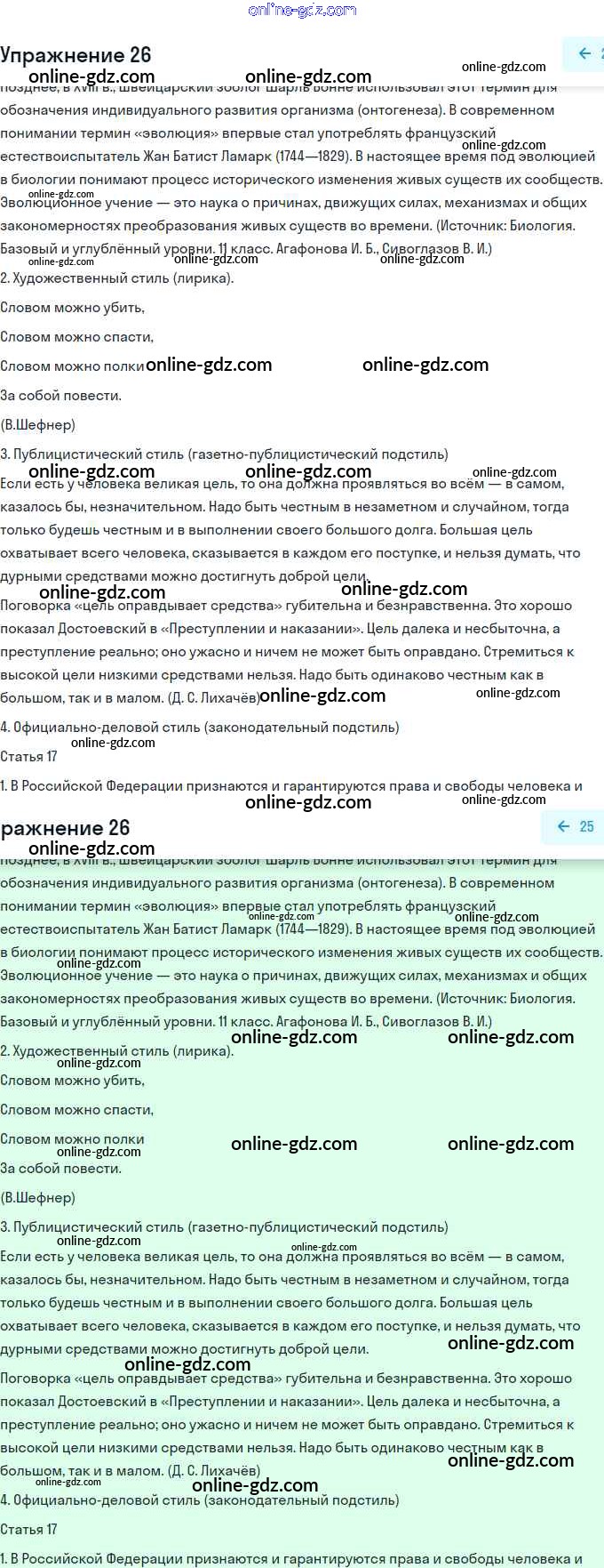 Готовые домашние задания по Русскому языку за 11 класс Учебник Львова, Львов Базовый и углубленный уровень 2016 - Упражнения 26