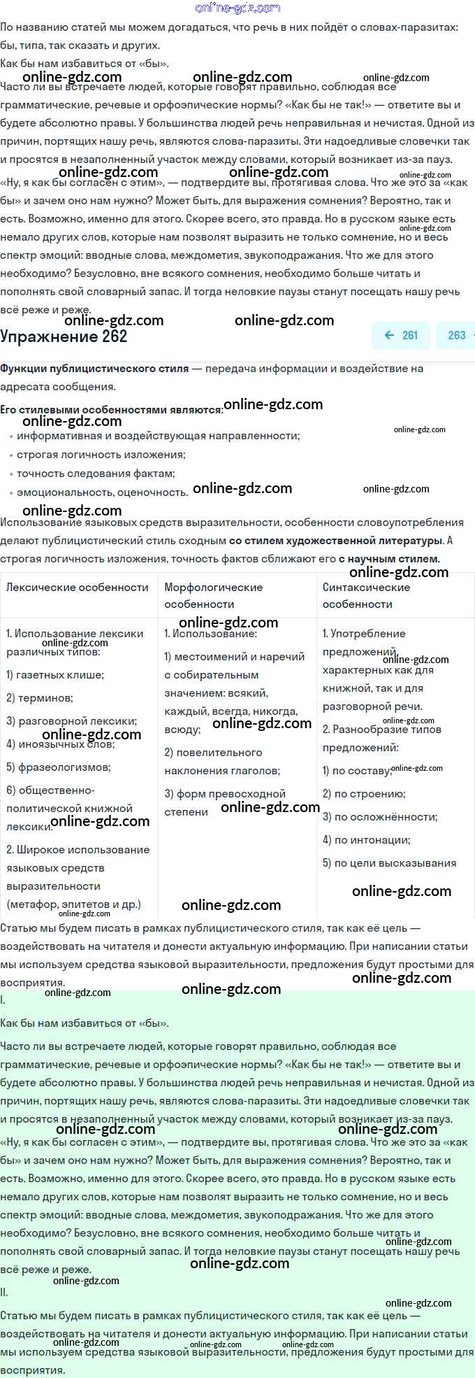 Готовые домашние задания по Русскому языку за 11 класс Учебник Львова, Львов Базовый и углубленный уровень 2016 - Упражнения 262