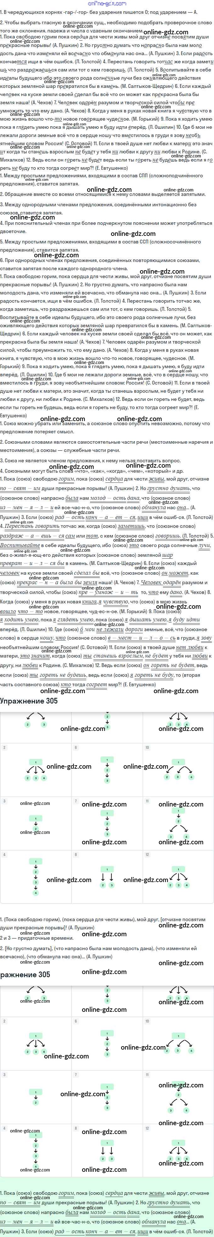 Готовые домашние задания по Русскому языку за 11 класс Учебник Львова, Львов Базовый и углубленный уровень 2016 - Упражнения 305