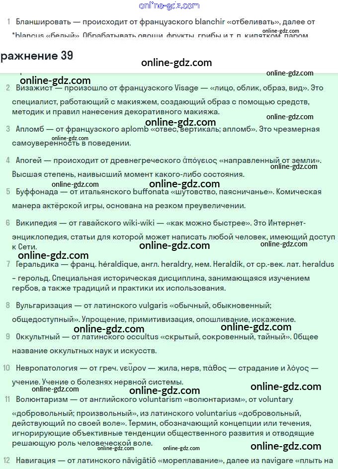 Готовые домашние задания по Русскому языку за 11 класс Учебник Львова, Львов Базовый и углубленный уровень 2016 - Упражнения 39