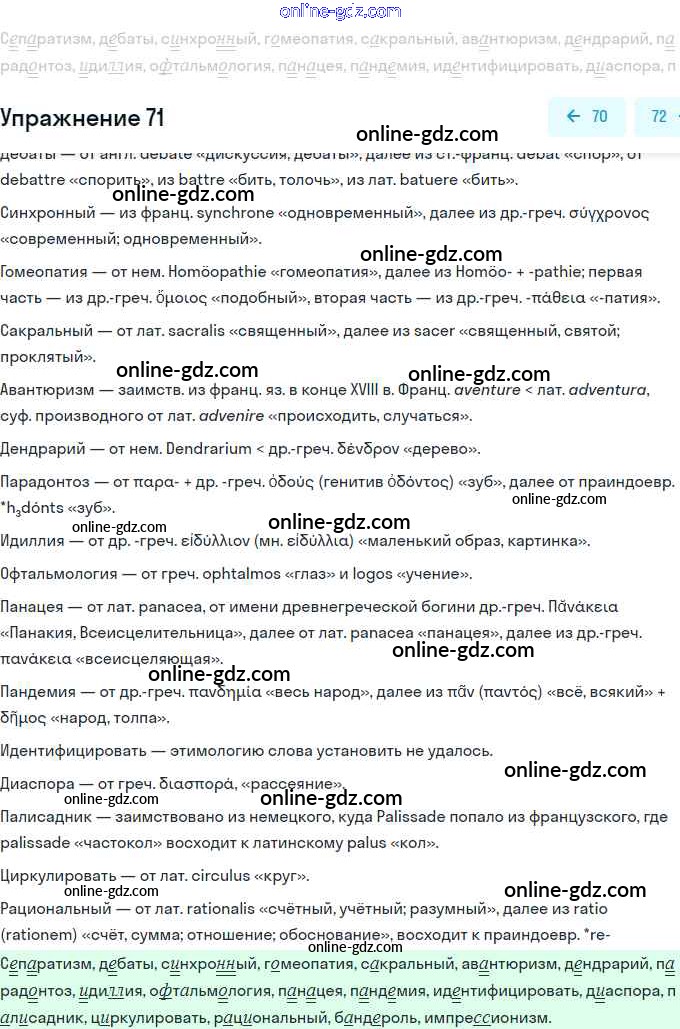 Готовые домашние задания по Русскому языку за 11 класс Учебник Львова, Львов Базовый и углубленный уровень 2016 - Упражнения 71