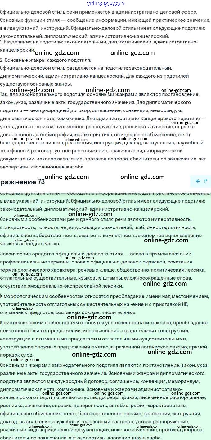 Готовые домашние задания по Русскому языку за 11 класс Учебник Львова, Львов Базовый и углубленный уровень 2016 - Упражнения 73