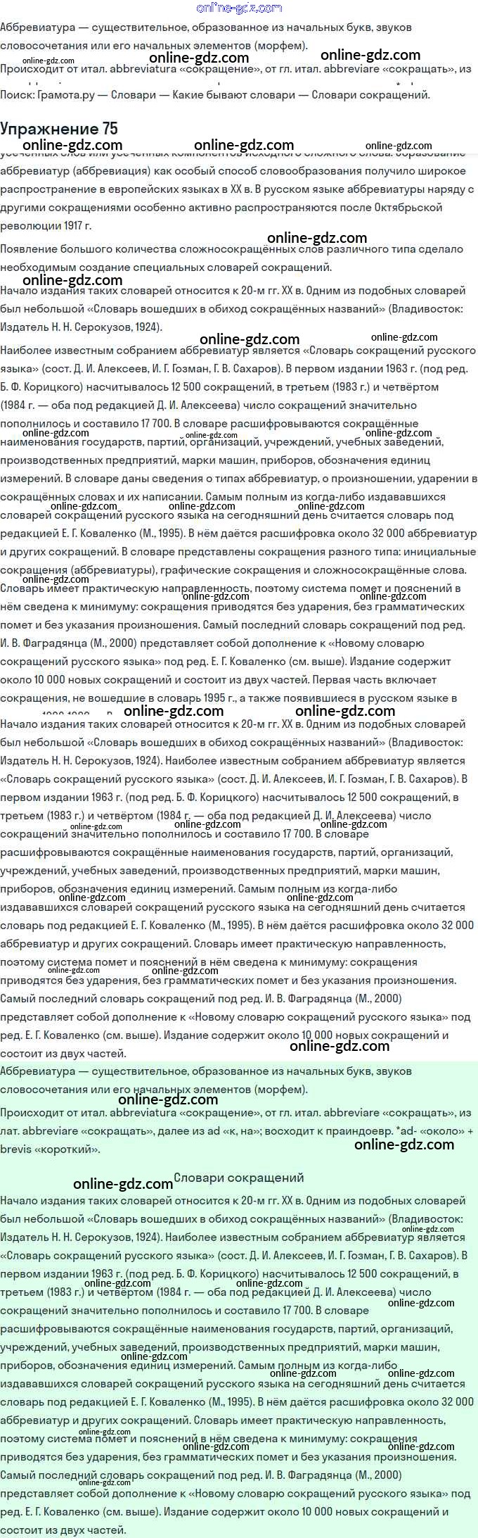 Готовые домашние задания по Русскому языку за 11 класс Учебник Львова, Львов Базовый и углубленный уровень 2016 - Упражнения 75