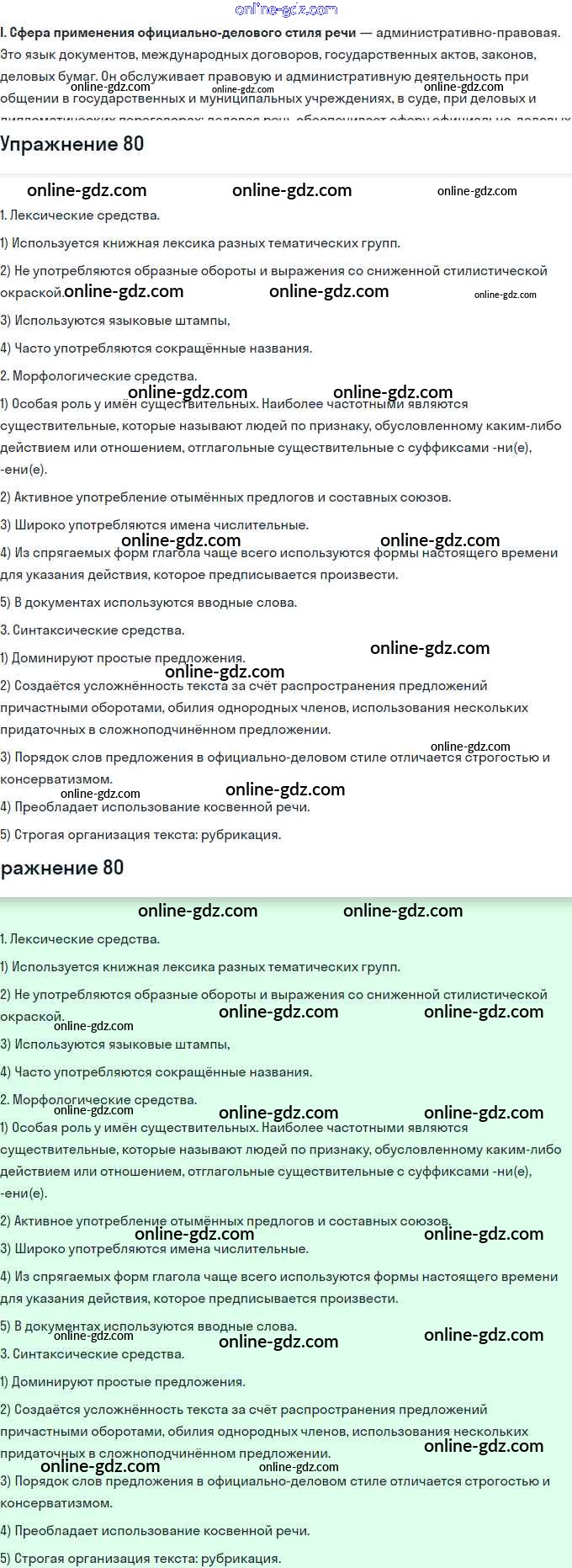 Готовые домашние задания по Русскому языку за 11 класс Учебник Львова, Львов Базовый и углубленный уровень 2016 - Упражнения 80
