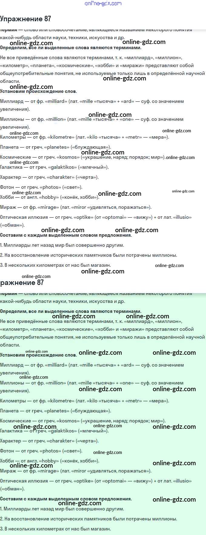 Готовые домашние задания по Русскому языку за 11 класс Учебник Львова, Львов Базовый и углубленный уровень 2016 - Упражнения 87