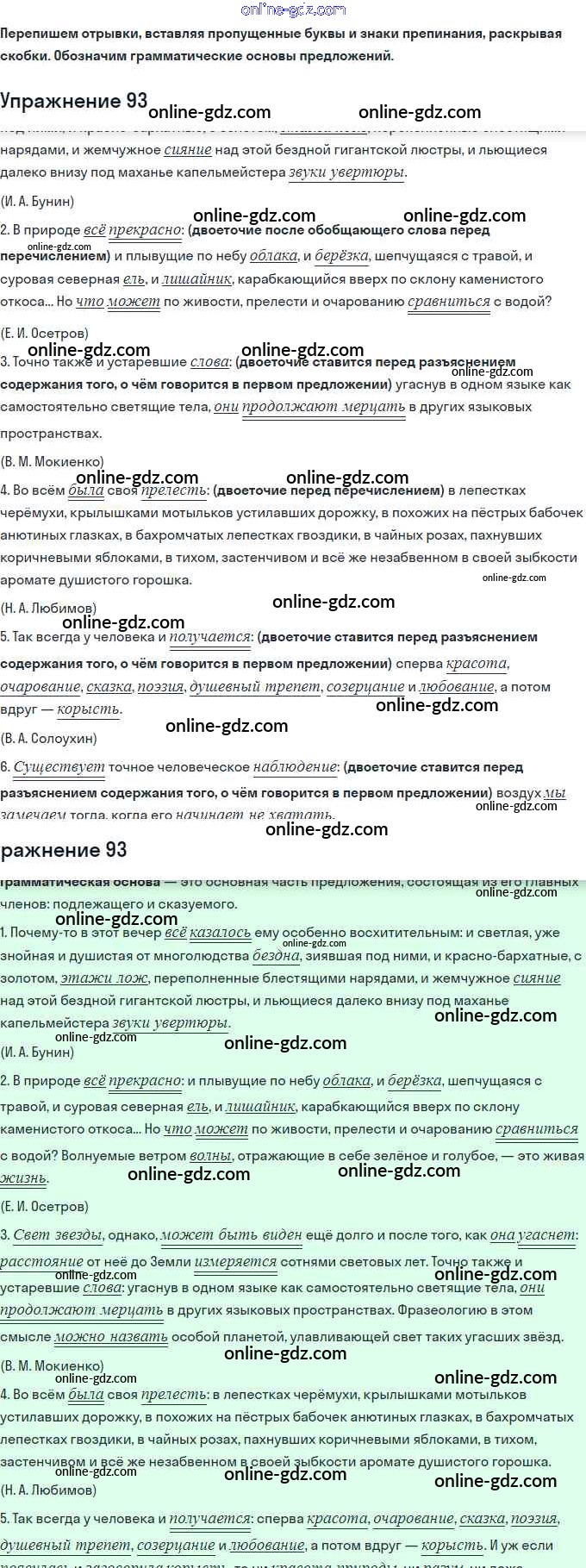 Готовые домашние задания по Русскому языку за 11 класс Учебник Львова, Львов Базовый и углубленный уровень 2016 - Упражнения 93