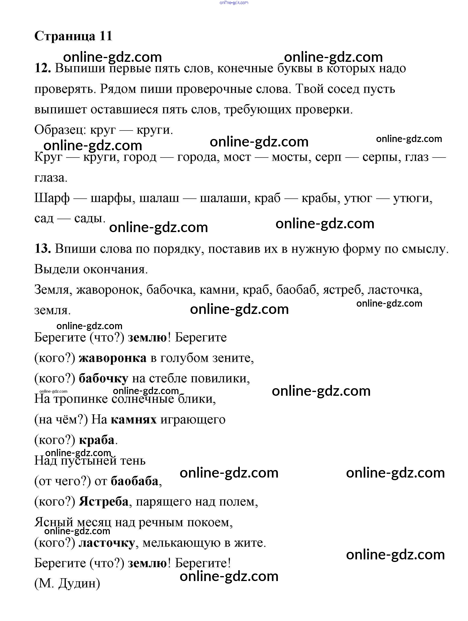 Готовые домашние задания по Русскому языку за 2 класс Тетрадь для самостоятельной работы Байкова, Малаховская 2017 - Часть 1. Страницы 11