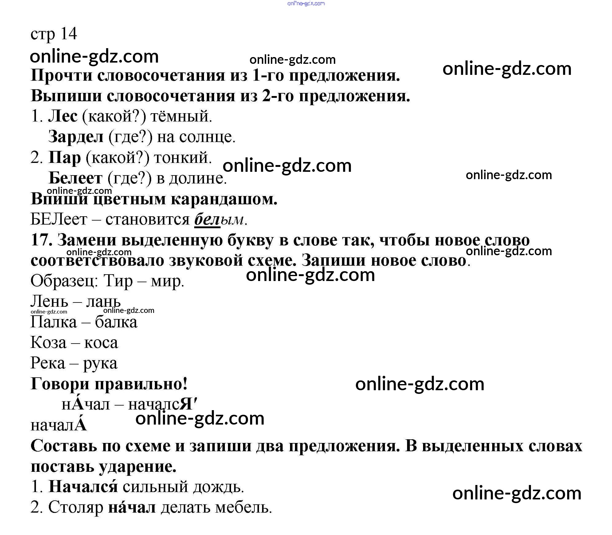 Готовые домашние задания по Русскому языку за 2 класс Тетрадь для самостоятельной работы Байкова, Малаховская 2017 - Часть 1. Страницы 14