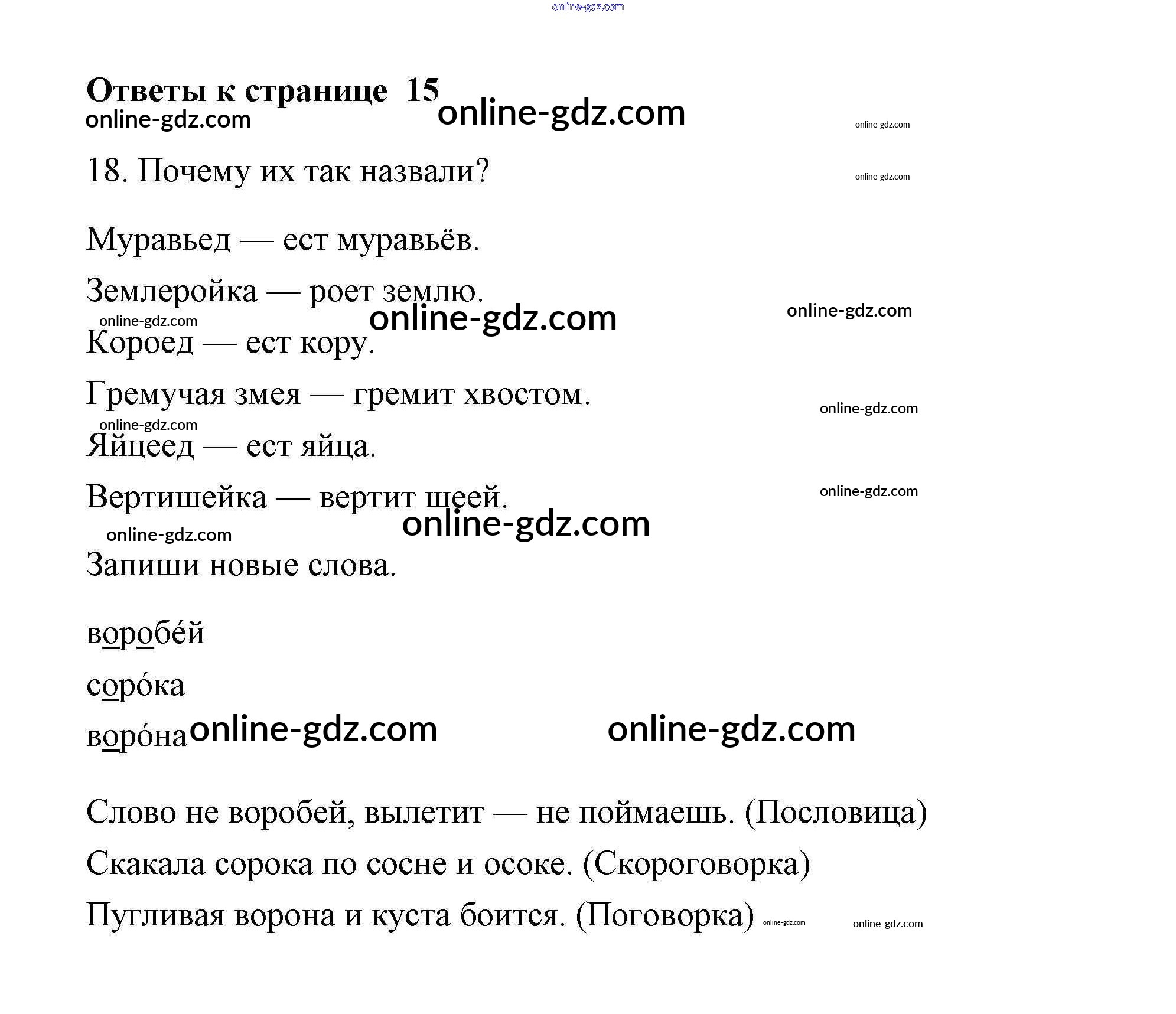 Готовые домашние задания по Русскому языку за 2 класс Тетрадь для самостоятельной работы Байкова, Малаховская 2017 - Часть 1. Страницы 15