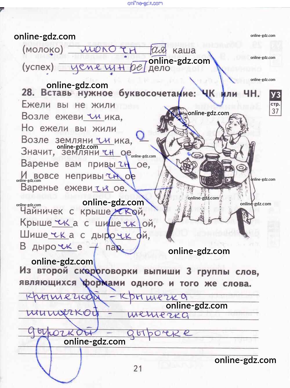 Готовые домашние задания по Русскому языку за 2 класс Тетрадь для самостоятельной работы Байкова, Малаховская 2017 - Часть 2. Страницы 21