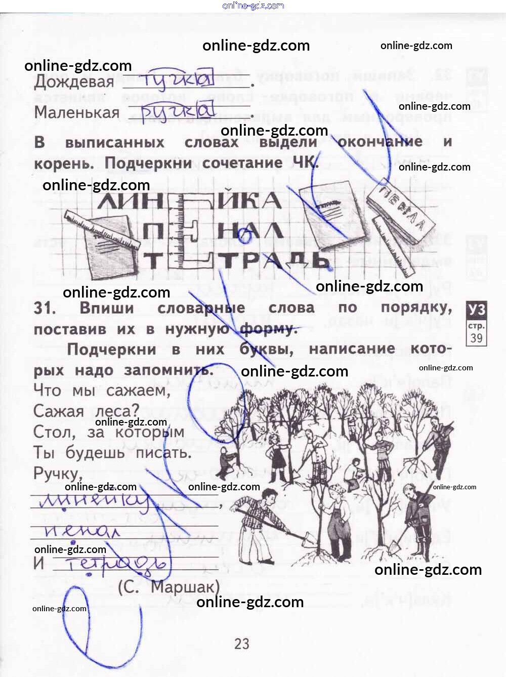 Готовые домашние задания по Русскому языку за 2 класс Тетрадь для самостоятельной работы Байкова, Малаховская 2017 - Часть 2. Страницы 23