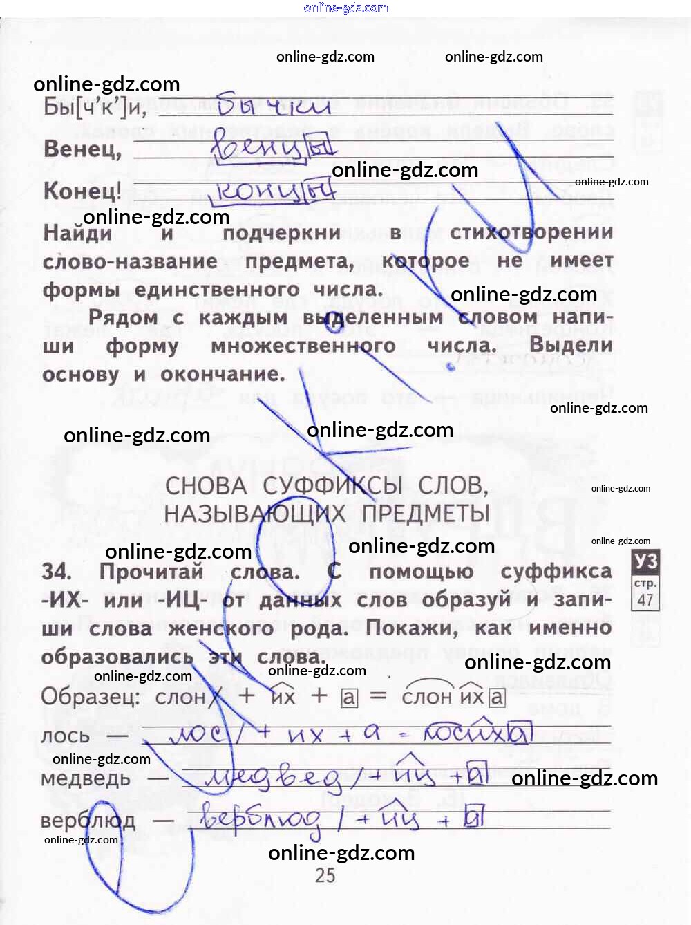 Готовые домашние задания по Русскому языку за 2 класс Тетрадь для самостоятельной работы Байкова, Малаховская 2017 - Часть 2. Страницы 25