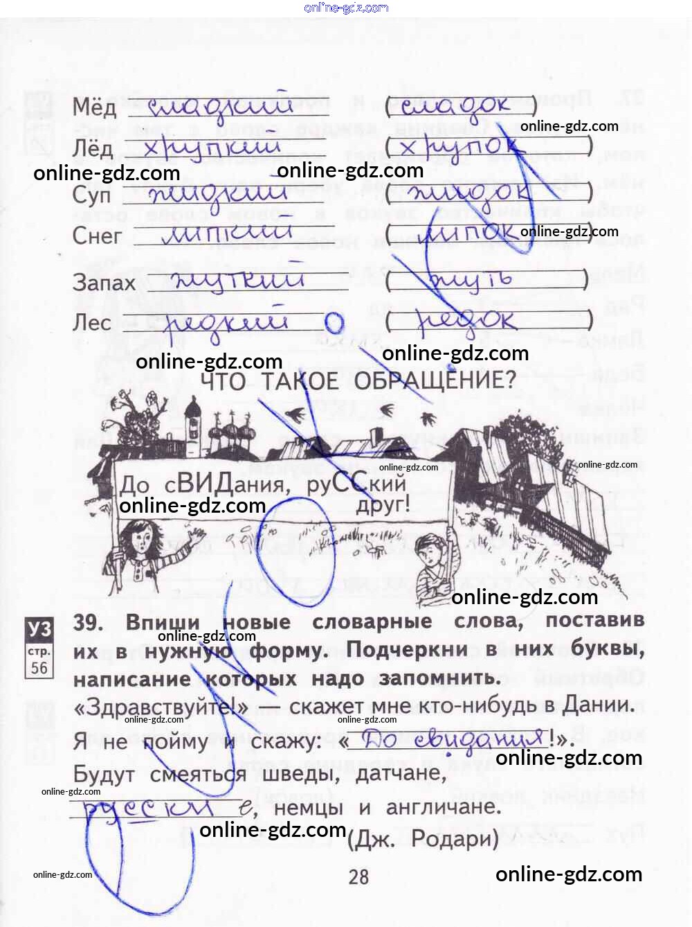 Готовые домашние задания по Русскому языку за 2 класс Тетрадь для самостоятельной работы Байкова, Малаховская 2017 - Часть 2. Страницы 28