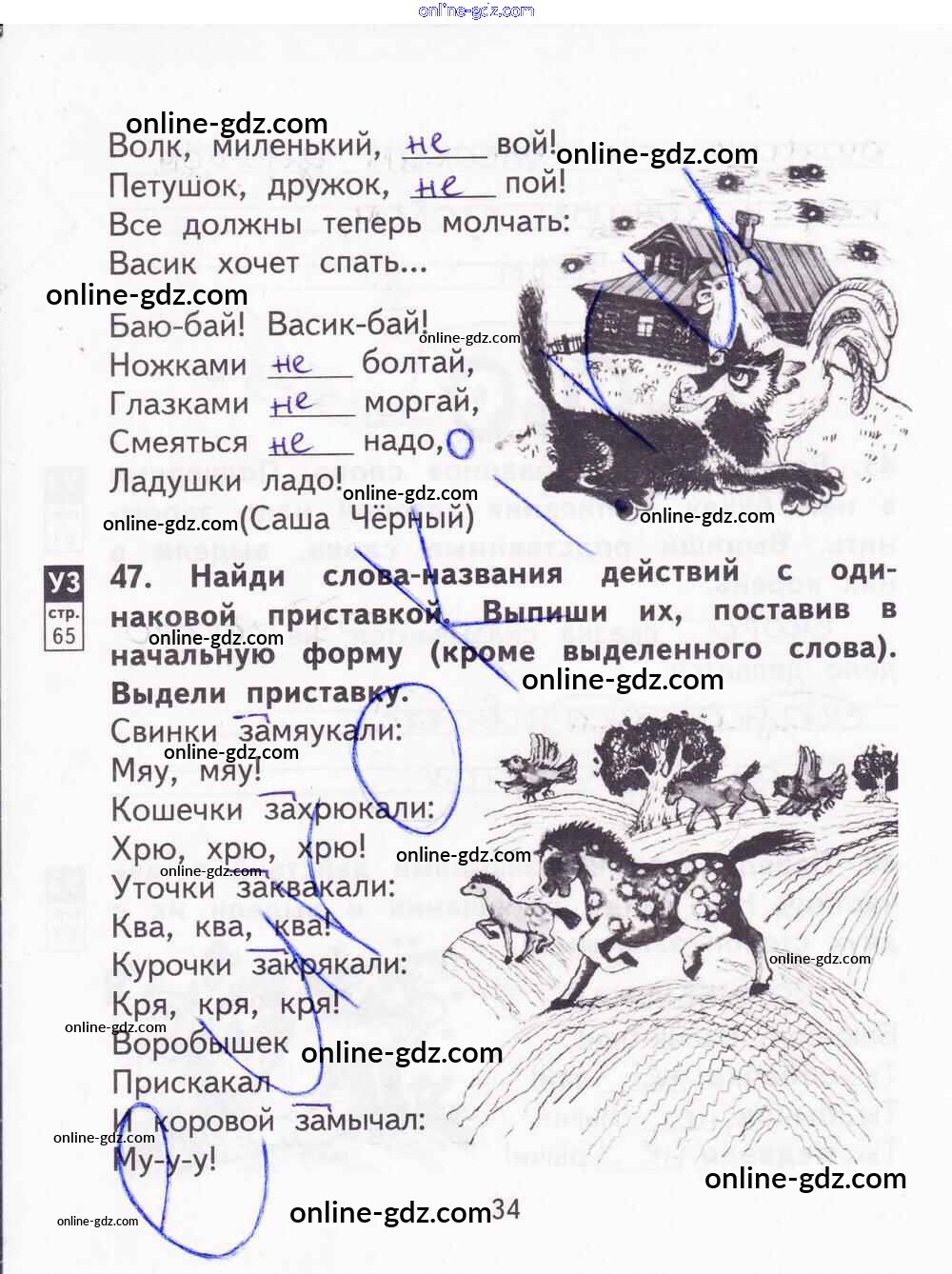 Готовые домашние задания по Русскому языку за 2 класс Тетрадь для самостоятельной работы Байкова, Малаховская 2017 - Часть 2. Страницы 34